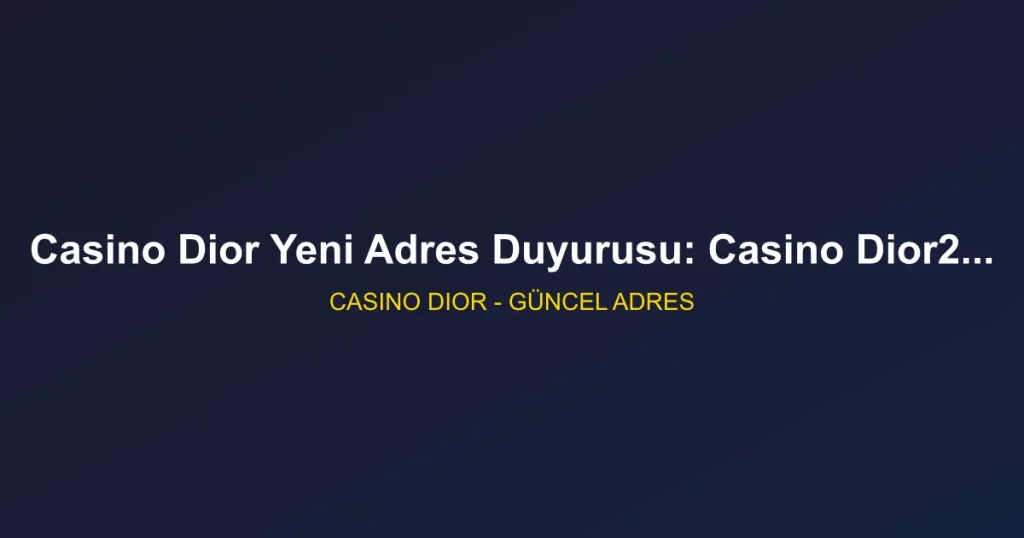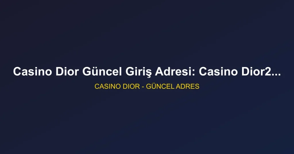 Daha fazlasını oku… from Casino Dior219 – Güncel Giriş Linki