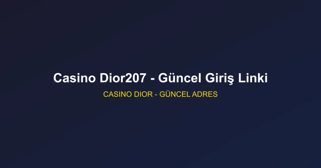 Daha fazlasını oku… from Casino Dior209 – Güncel Giriş Linki